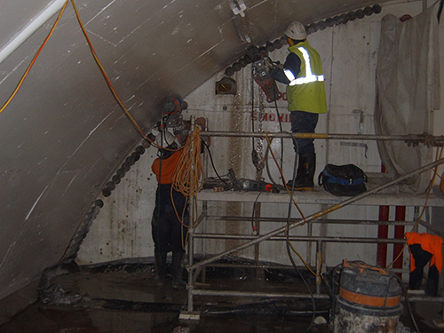 Horizontal core drilling 1500mm deep.