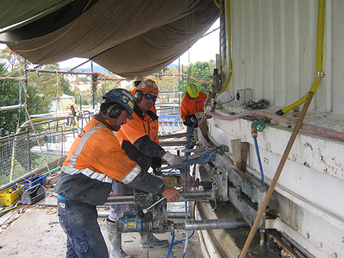 Tidbinbilla Tracking Station Horizontal core drilling 1500mm deep, for removal of concrete grout around 70 metres diameter satellite dish.